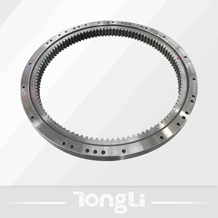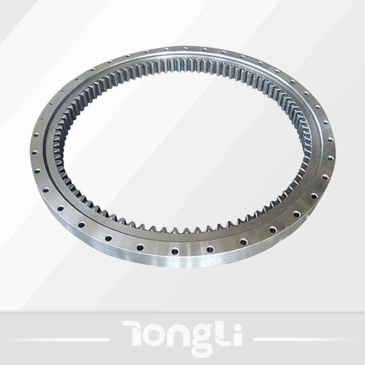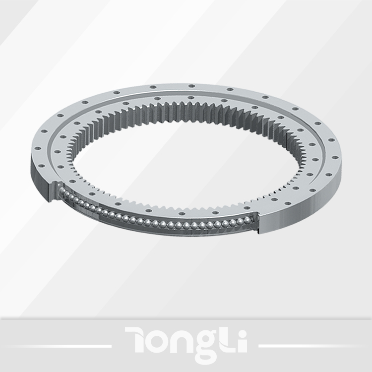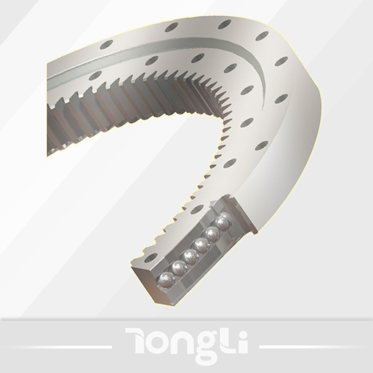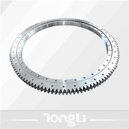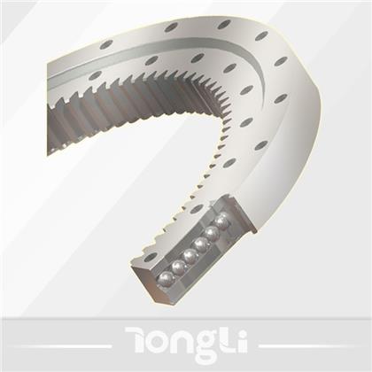 单排球式回转支承以一排钢球作为滚动体,钢球与滚道四点接触,能同时承受轴向力、径向力和倾覆力矩。适用直径小于2000mm的中小规格回转支承的产品。