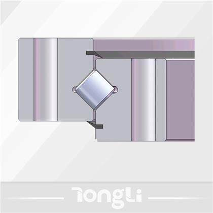交叉滚柱式回转支承以一排成90°相互交叉的滚柱作为滚动体,滚柱与滚道成线接触,能同时承受轴向力、径向力和倾覆力矩。缺点是只有一半的滚柱承载,实际承载能力达不到理论设计要求。